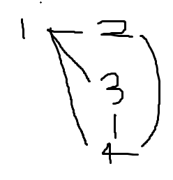 DFS는 깊게 탐색하기 때문에 처음 시작정점 1에서 시작하면 1->2->4->3 순으로 방문하게됩니다.