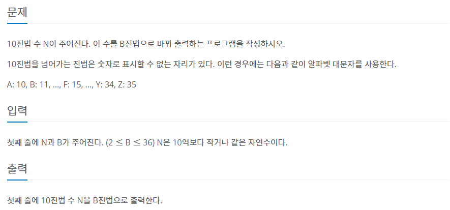 10진법 이상일 경우는 문제에서 제시한것과 같이 10부터 A로 시작한다고 한다.