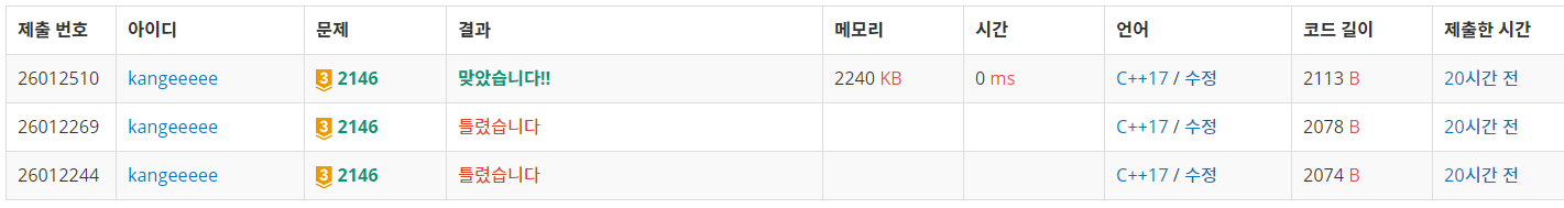 마지막으로 각각의 다리 가중치가 다르면 다리를 연결할 수 있으니, 그 가중치에서 가장 작은 값을 출력해주는게 이문제의 정답입니다.